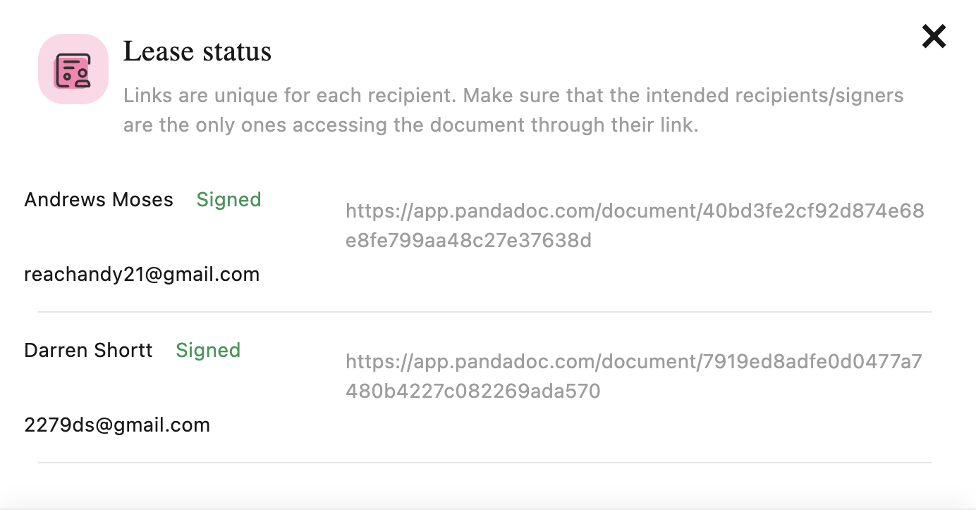 Sometimes, your tenant complains that they are not receiving the link to sign the lease. There is an easy way to copy the link and share it in any other channel like another email, facebook messenger or text.